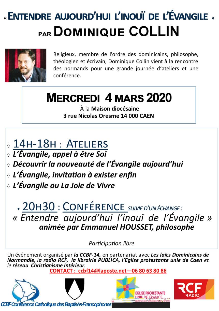 Dominique Collin : La condition fondamentale, c’est d’abord d’entendre que l’Évangile est cette communication de la joie d’exister. Nombreux sont les gens qui pensent que l’Évangile est une fable ancienne qui n’a plus de sens ou une morale culpabilisante à dépasser. Peu entendent qu’il conduit à la « vraie vie ». Mais il est vrai aussi qu’on ne peut entendre l’Évangile sans accepter d’être dérouté par sa « folle sagesse », laquelle nous invite à nous déprendre de notre « moi, je », déprise plus difficile à entendre, plus inouïe donc, dans une société du « tout à l’ego » …….