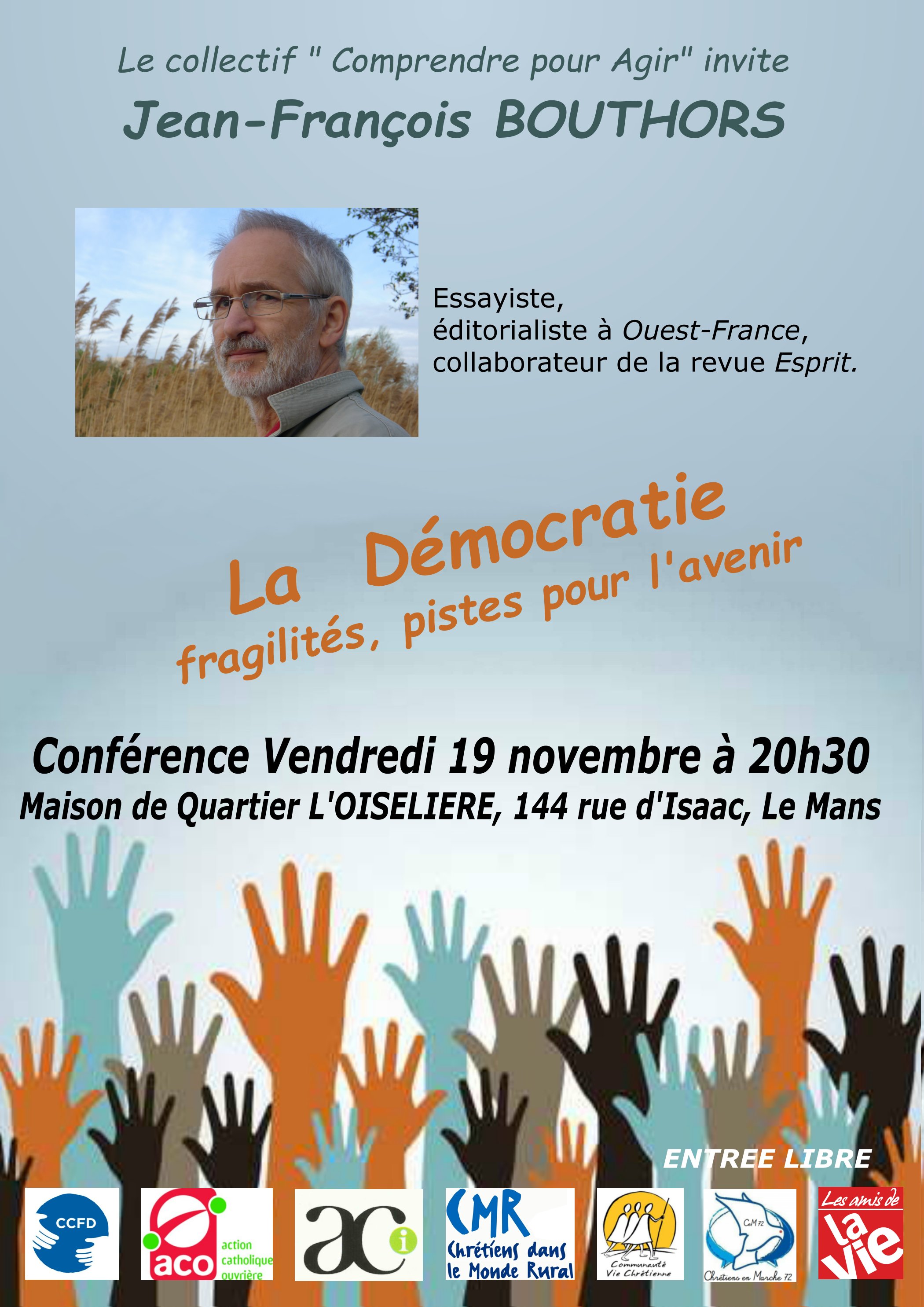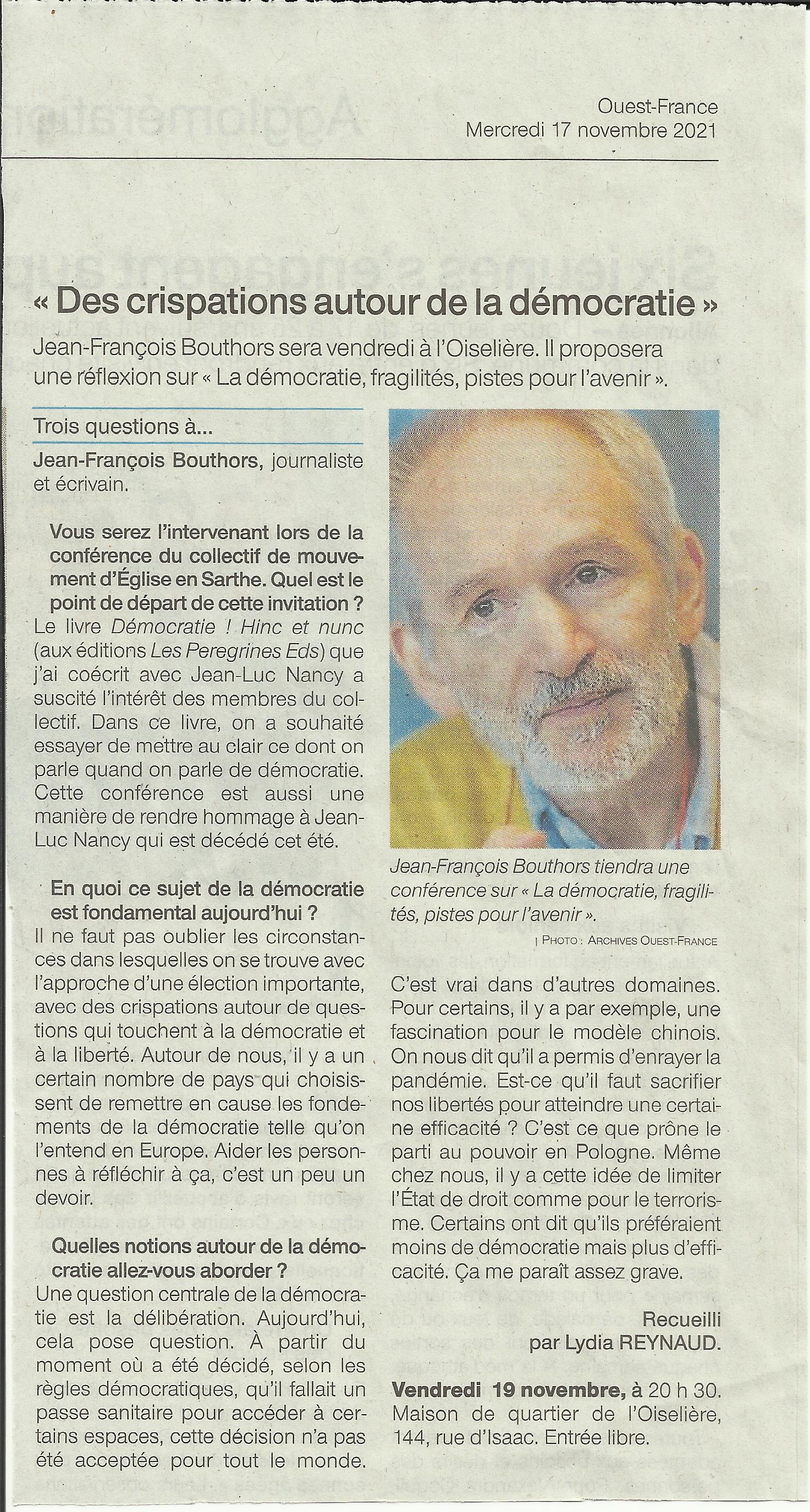 Texte de la conférence : https://ccbf-sarthe.com/wp-content/uploads/2021/11/le-mans-fragilite-de-la-democratie-jf-bouthors.pdf